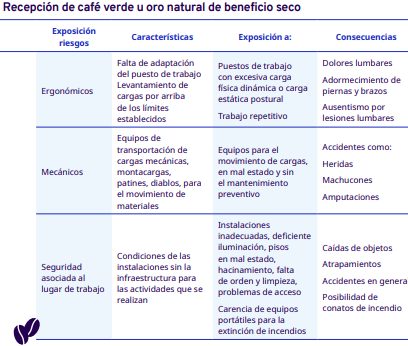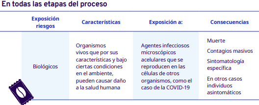 Fuente: OIT.2020.Protocolo de seguridad y salud en el trabajo del proceso de industrialización en diferentes escalas, desde el grano entero hasta la venta del café en grano.