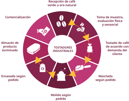 En 2016, el consumo interno de café se estimó en 1.41 Kg. per capita. El café soluble participaba con el 54.2% del mercado nacional, el café tostado y molido con el 40.5% y el café tostado en grano el 5.3%.12 En este apartado describiremos brevemente los diferentes procesos industriales que existen en el país para el proceso del café verde resultante del beneficiado seco.
